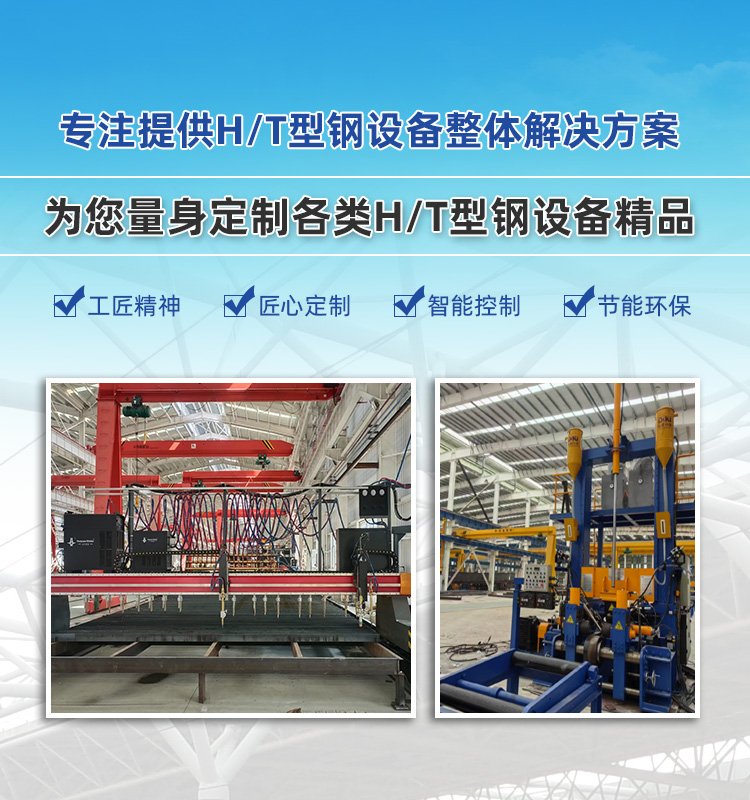 集研发、制造、组装、销售H型钢设备的科技型企业。研制开发的焊接系列产品H型生产线,焊接辅机,焊接专用机,数控设备,抛丸清理设备等。